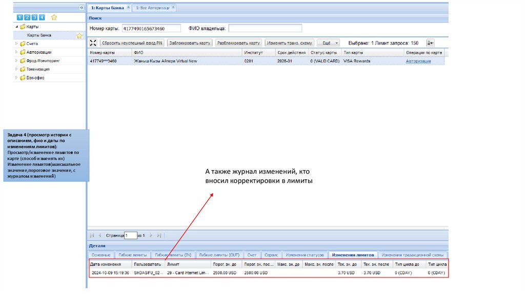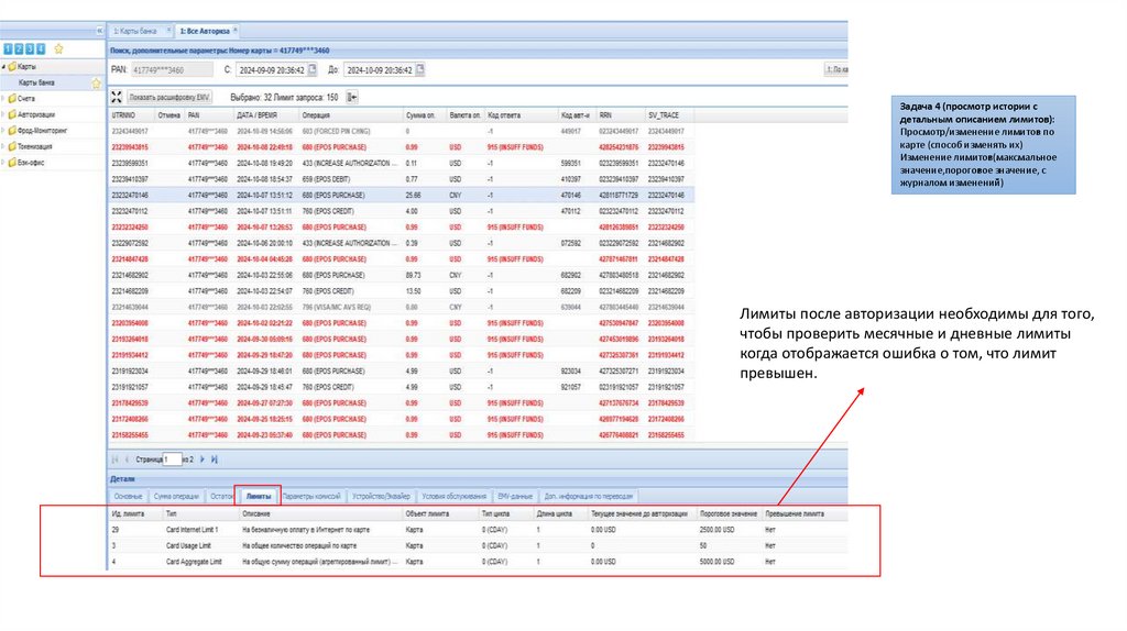 Задача 4 (просмотр истории сдетальным описанием лимитов):