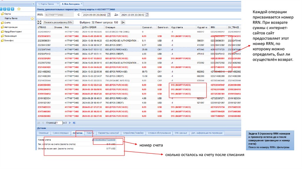 Задача 5 (просмотр RRN номеров