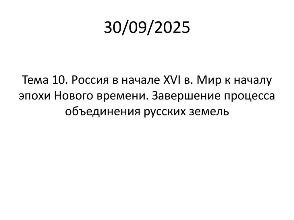 Тема 10. Россия в начале XVI в. Мир к началуэпохи Нового времени. Завершение процесса