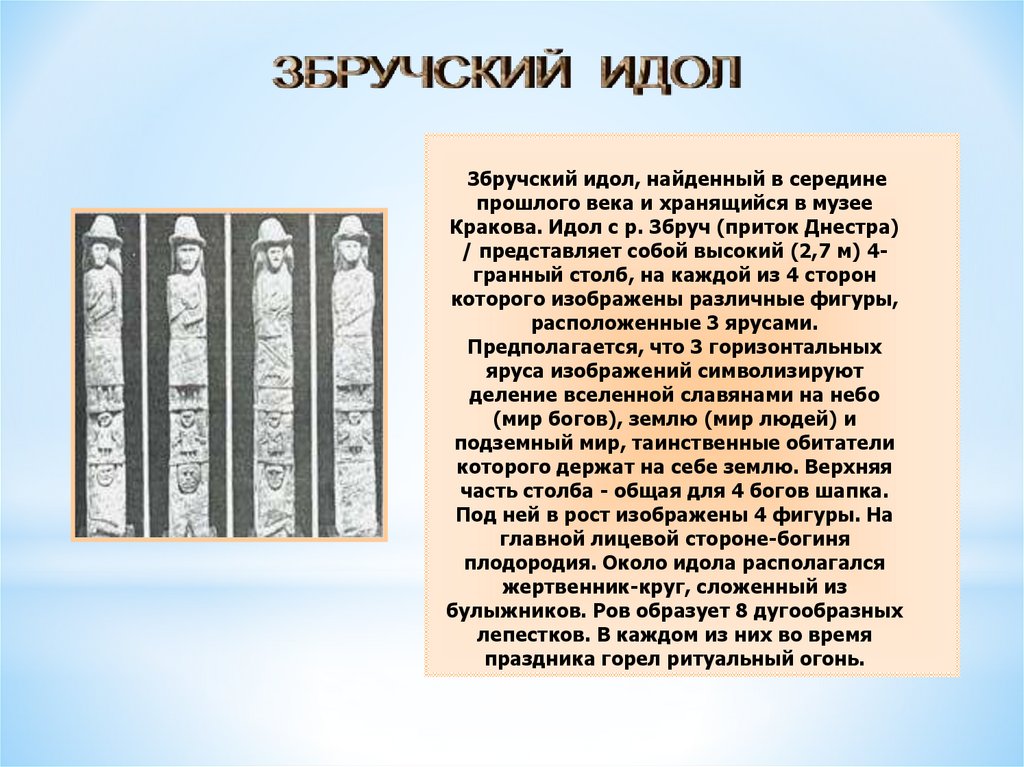 Збручский идол, найденный в серединепрошлого века и хранящийся в музее