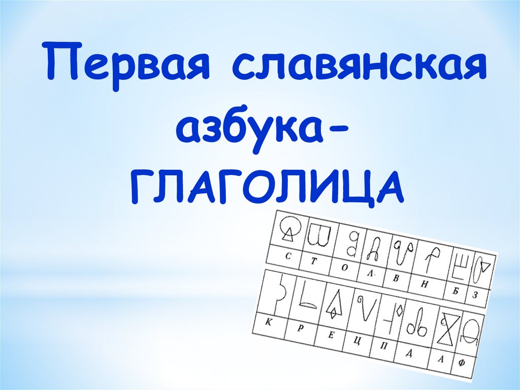 Первая славянскаяазбукаГЛАГОЛИЦА