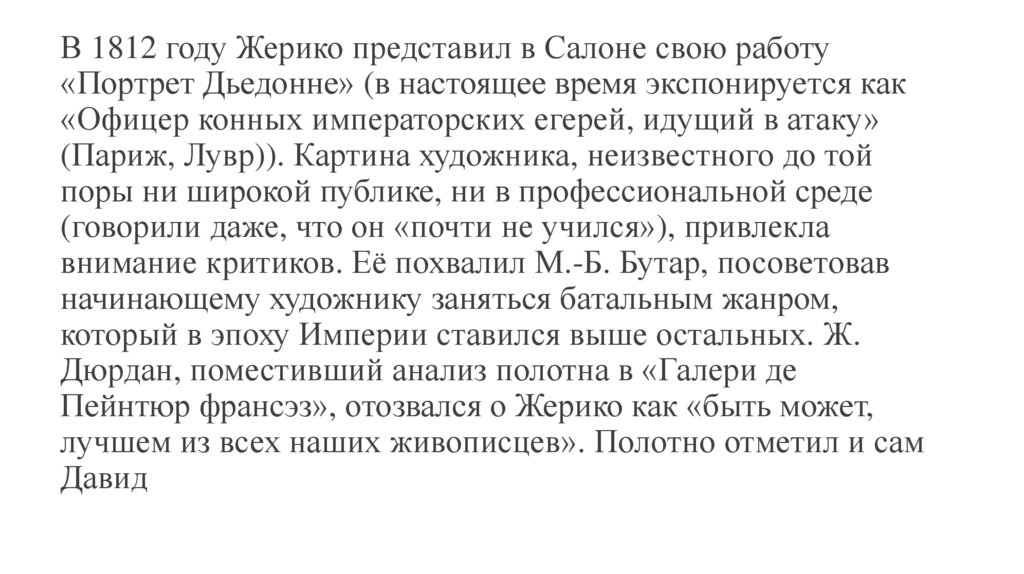 Пейнтюр франсэз», отозвался о Жерико как «быть может,