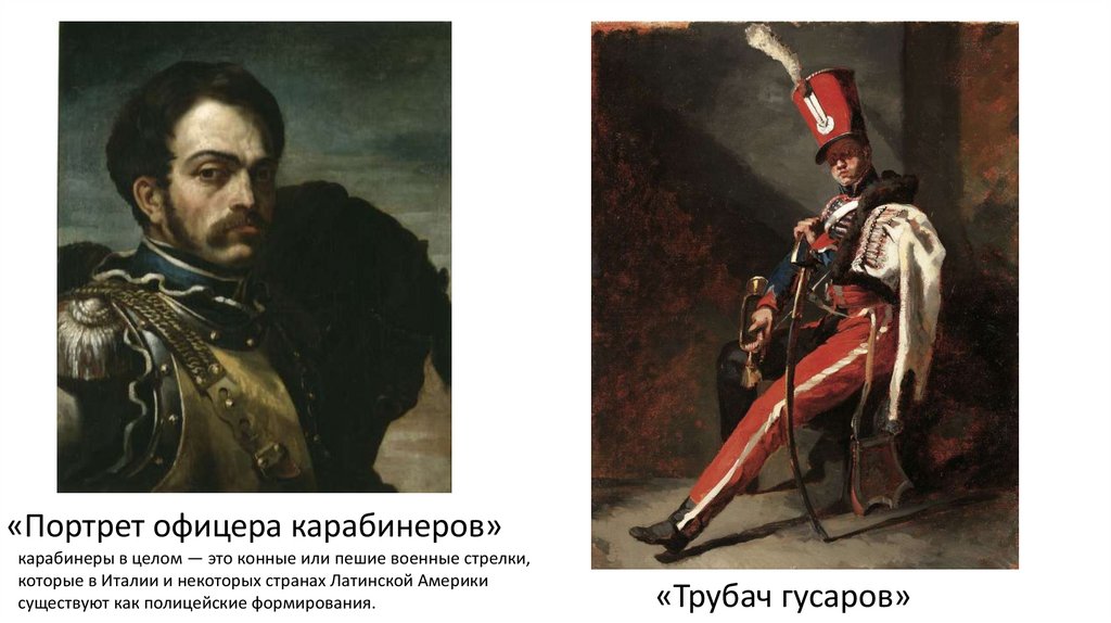 «Портрет офицера карабинеров»карабинеры в целом — это конные или пешие военные стрелки,