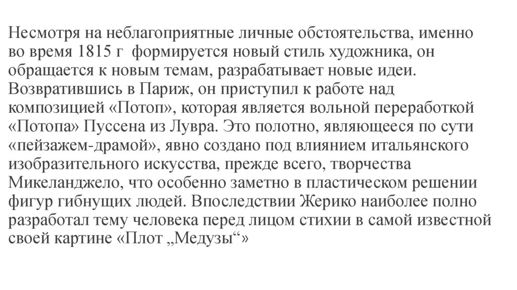 фигур гибнущих людей. Впоследствии Жерико наиболее полно