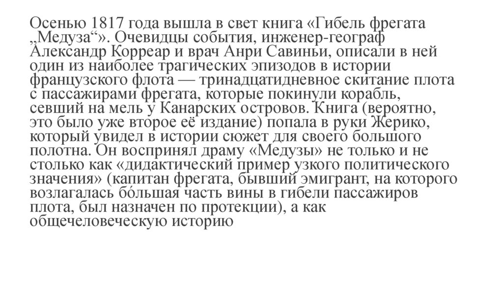 полотна. Он воспринял драму «Медузы» не только и не