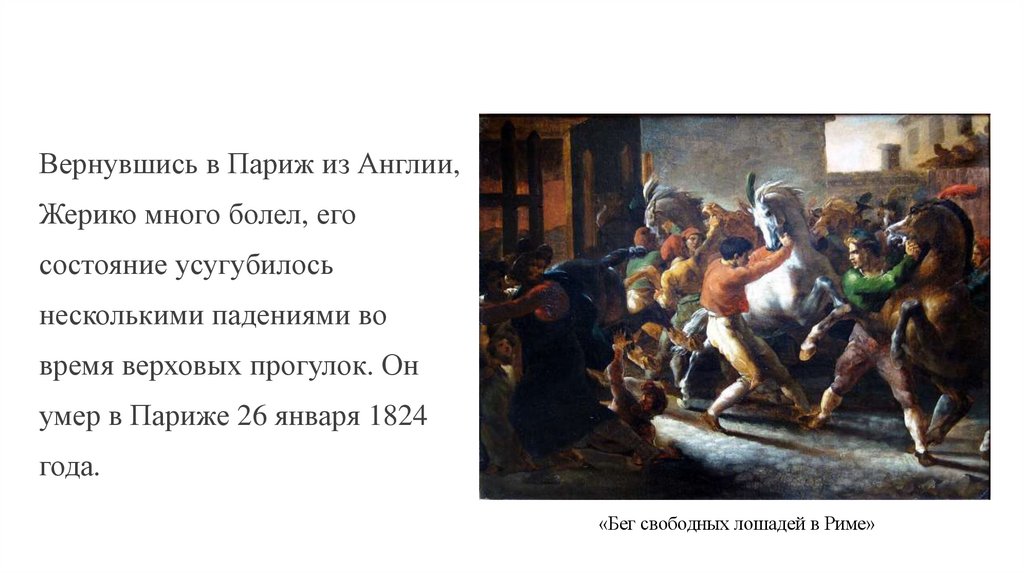 Вернувшись в Париж из Англии,Жерико много болел, его