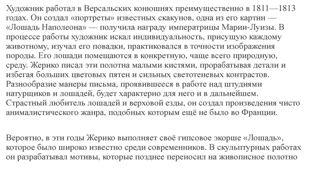среду. Жерико писал эти полотна малыми кистями, прорабатывая детали и