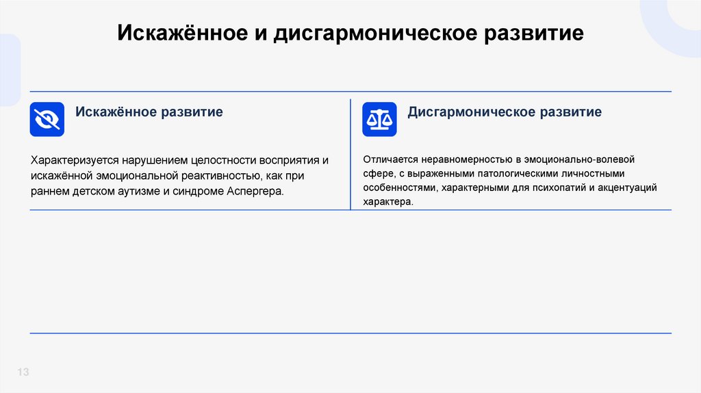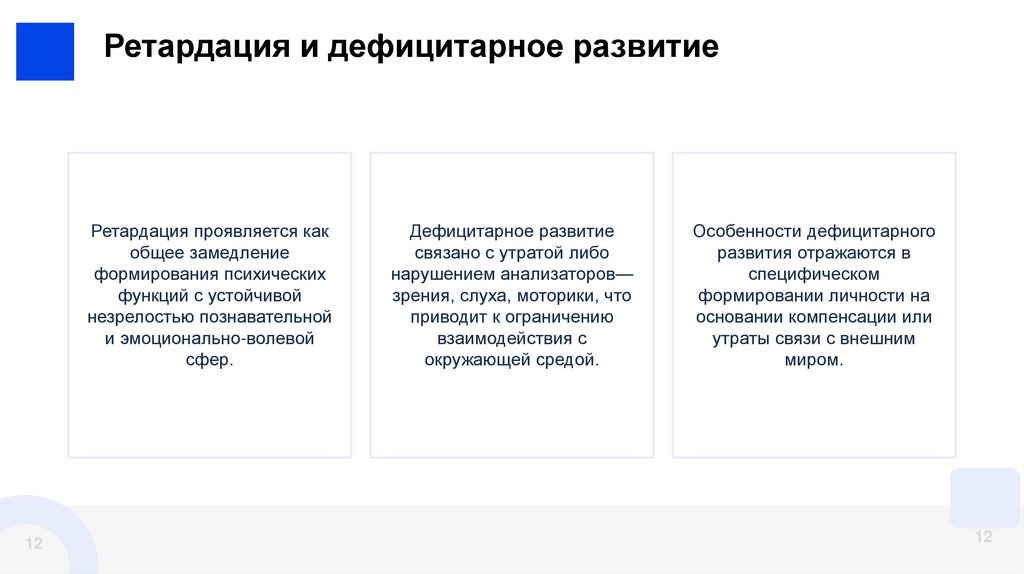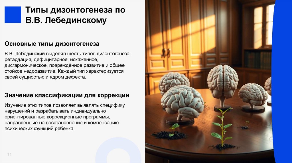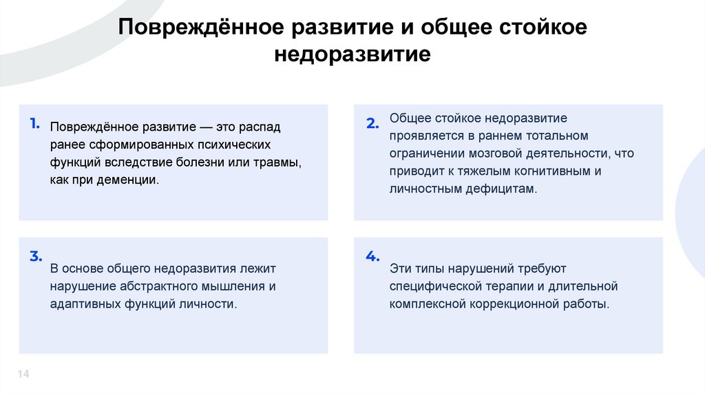 недоразвитие, задержанное, поврежденное, дефицитарное, искаженное и дисгармоническое развитие).