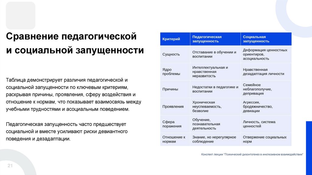8. Педагогическая и социальная запущенность.