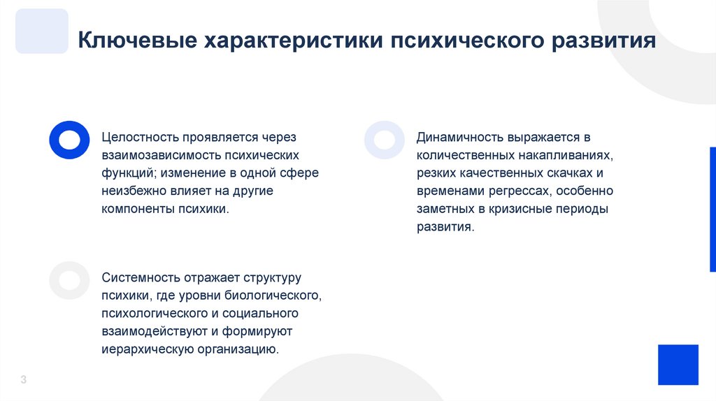 Ключевые характеристики психического развитияЦелостность проявляется через