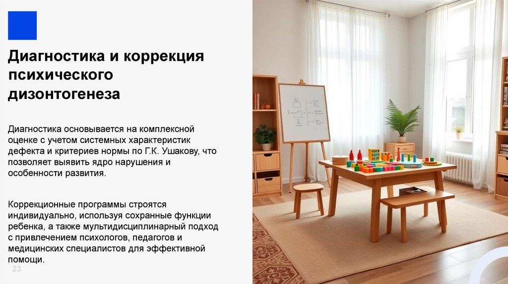 поддержки при психическом дизонтогенезе, обеспечивая индивидуальную помощь,