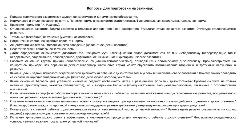 Нормальное и отклоняющееся развитиепсихики