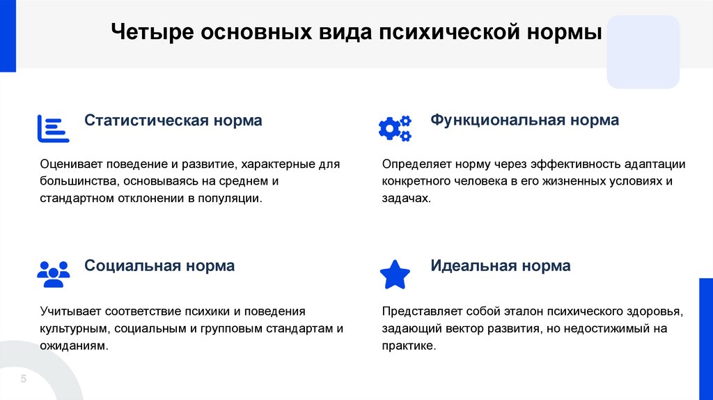 Четыре основных вида психической нормыСтатистическая норма
