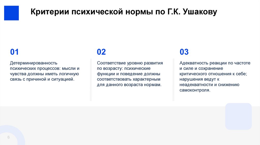 Критерии психической нормы по Г.К. УшаковуДетерминированность