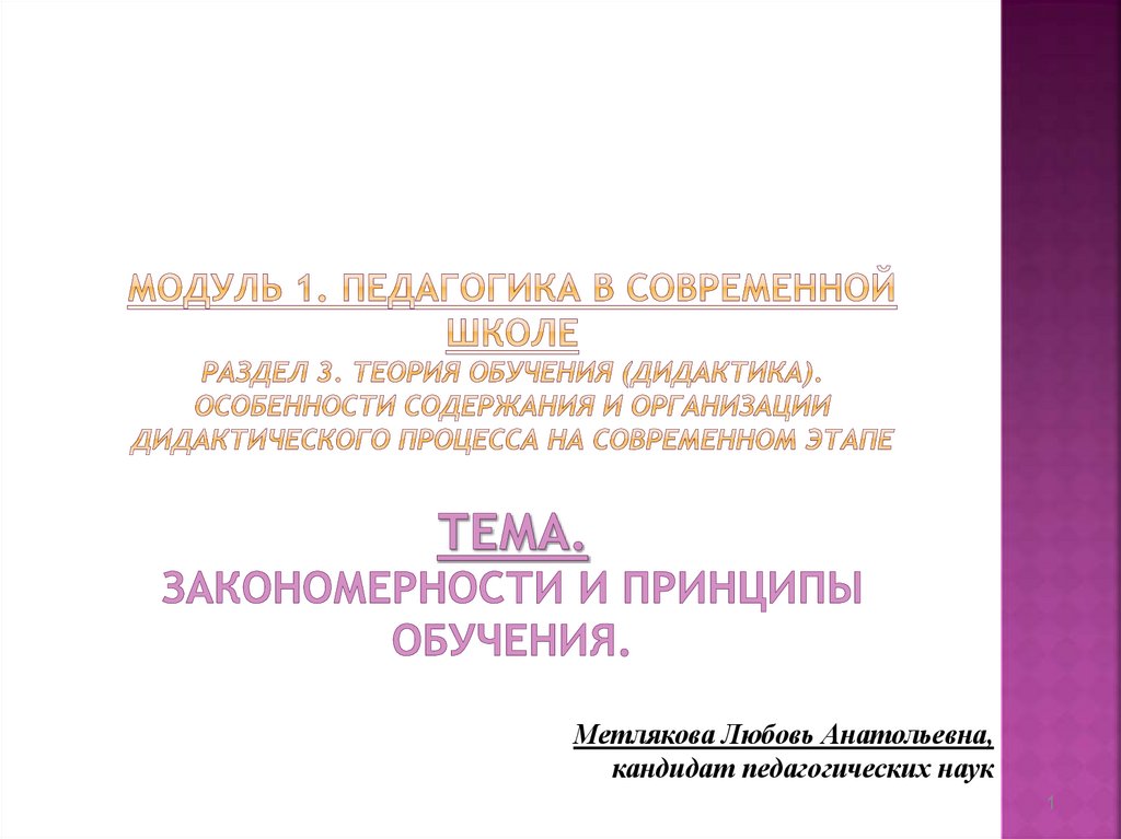 1. Модуль 1. Педагогика в современной школе Раздел 3. Теория обучения (дидактика). Особенности содержания и организации