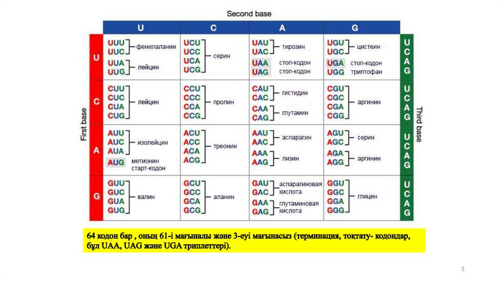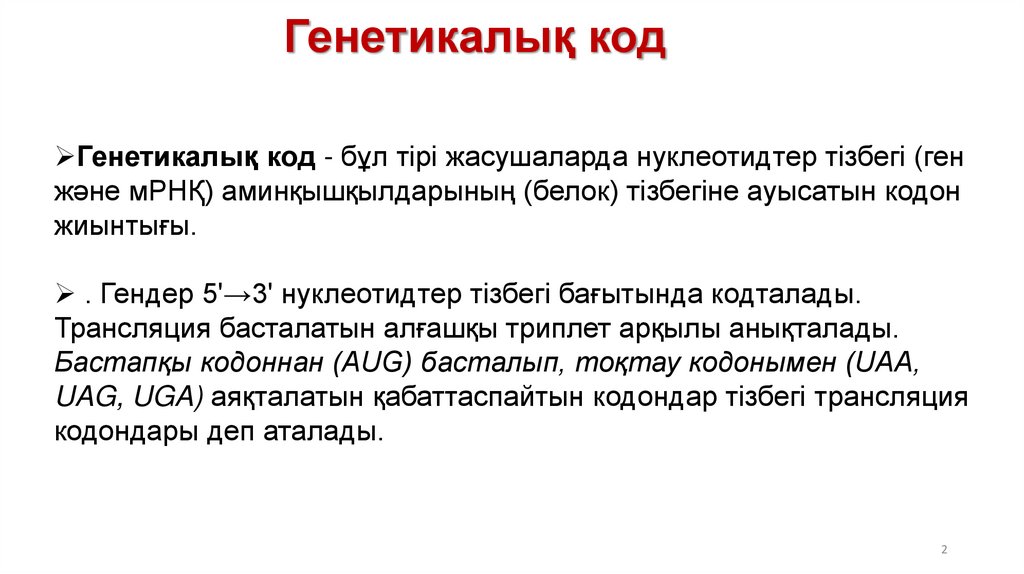 дейін) бір ғана генетикалық кодты пайдаланады.