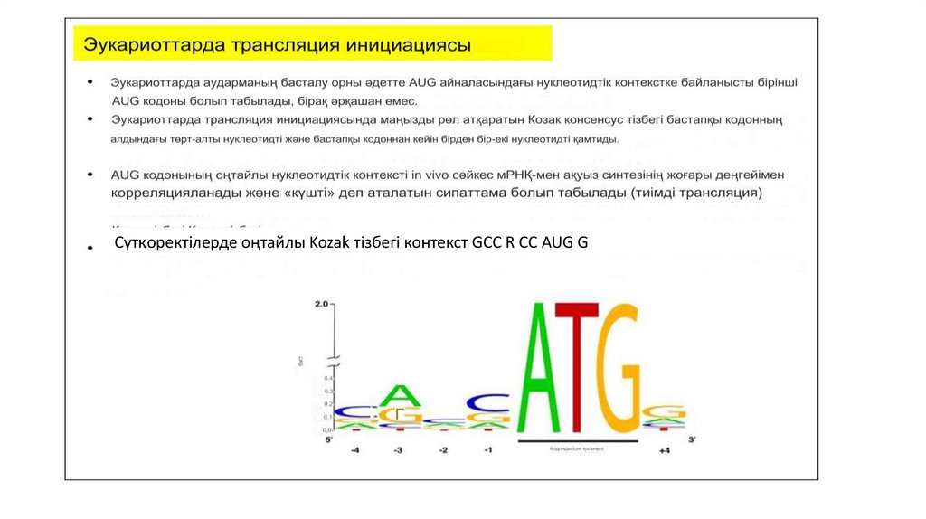 Сүтқоректілерде оңтайлы Kozak тізбегі контекст GCC R CC AUG G15.