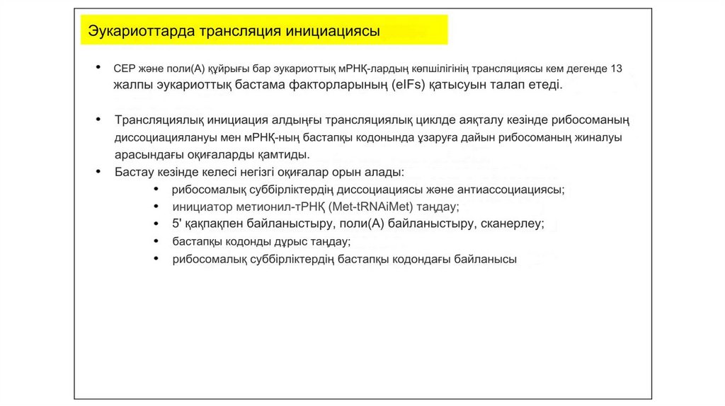 Немесе рибосома мРНҚ-ға қатысты - оның 3'- ке қарай жылжиды деп айта аламыз . Соңы .