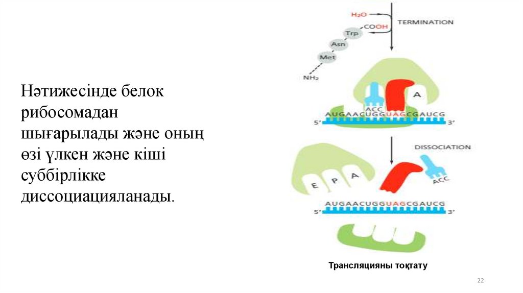 рибосомадан шығады, ал рибосоманың суббірліктер бір-бірінен ажырап ,