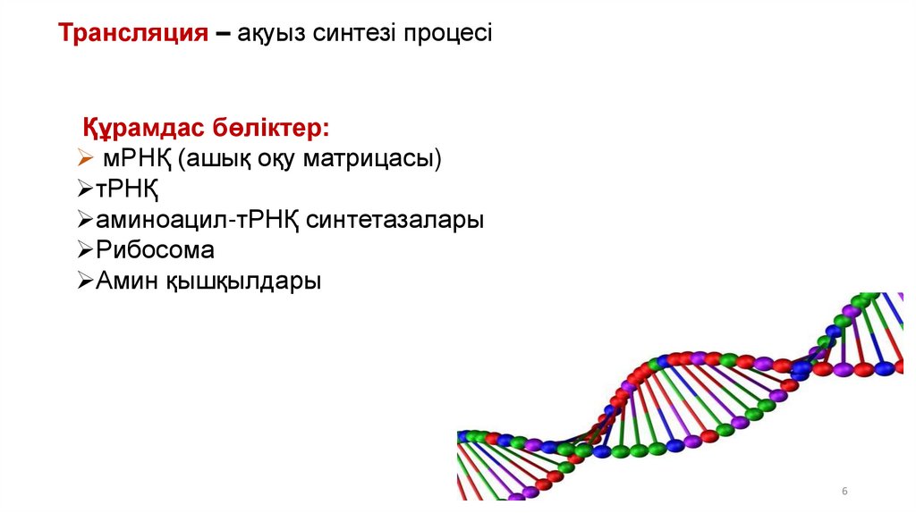 Трансляция – ақуыз синтезі процесіҚұрамдас бөліктер: