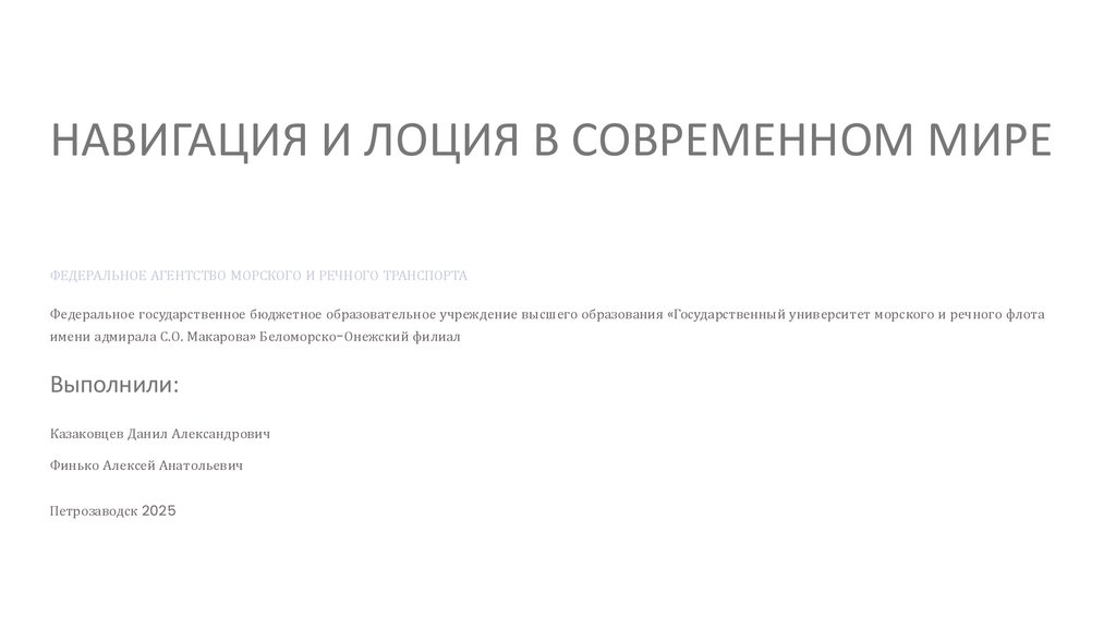 НАВИГАЦИЯ И ЛОЦИЯ В СОВРЕМЕННОМ МИРЕФЕДЕРАЛЬНОЕ АГЕНТСТВО МОРСКОГО И РЕЧНОГО ТРАНСПОРТА