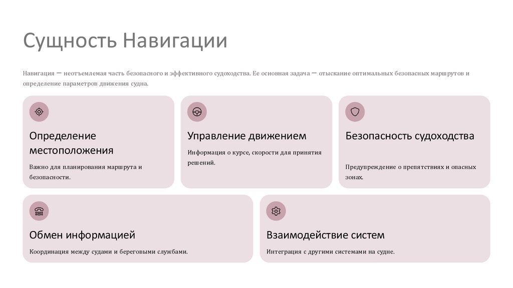 Сущность НавигацииНавигация — неотъемлемая часть безопасного и эффективного судоходства. Ее основная задача — отыскание оптимальных безопасных маршрутов и