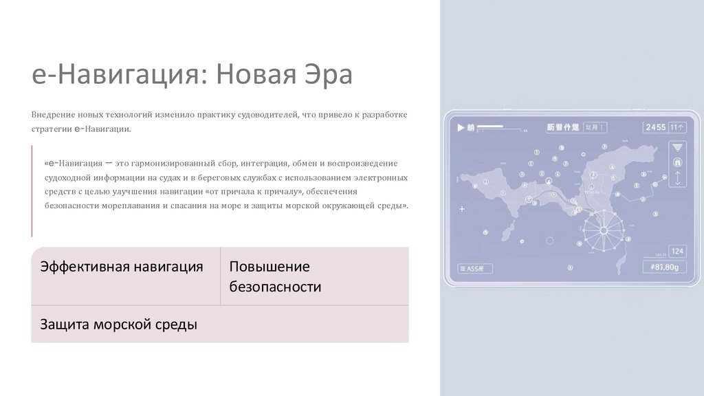e-Навигация: Новая ЭраВнедрение новых технологий изменило практику судоводителей, что привело к разработке