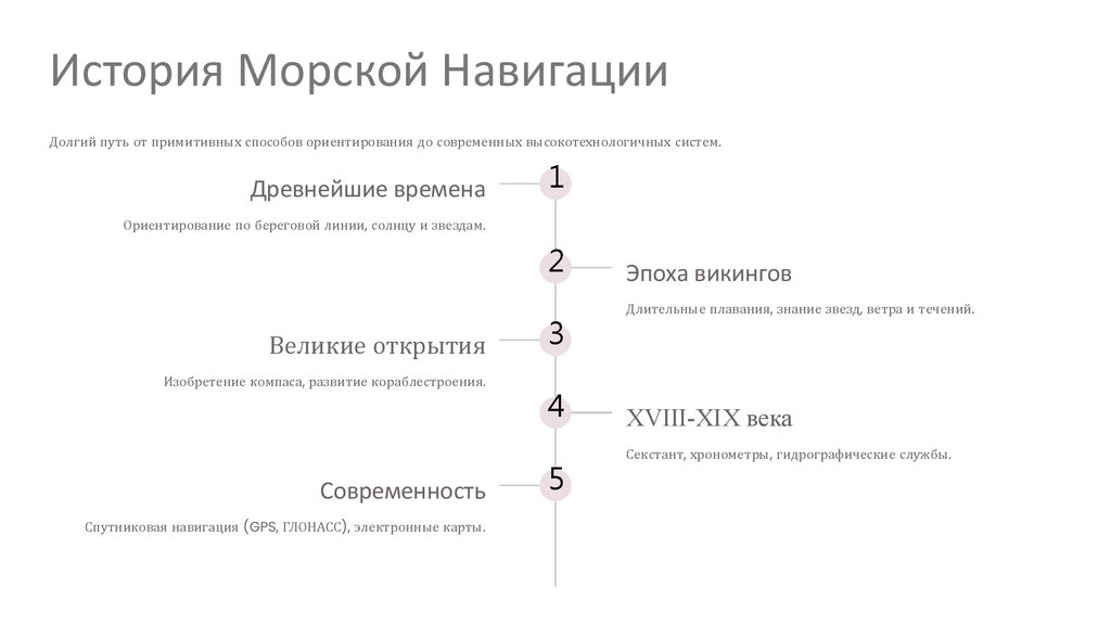 История Морской НавигацииДолгий путь от примитивных способов ориентирования до современных высокотехнологичных систем.