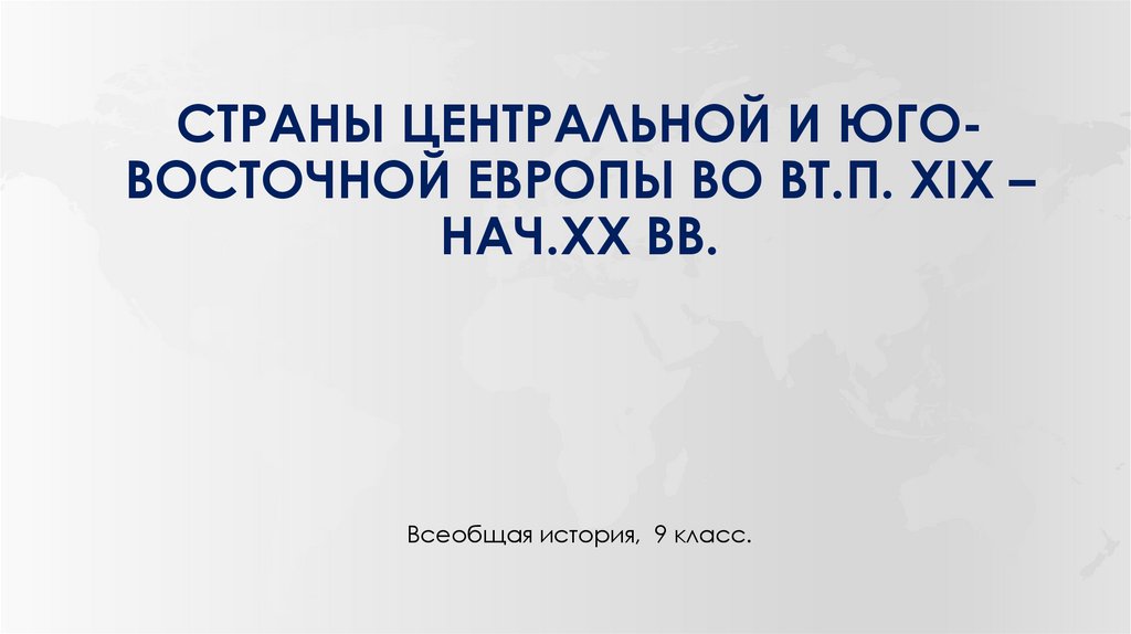 СТРАНЫ ЦЕНТРАЛЬНОЙ И ЮГОВОСТОЧНОЙ ЕВРОПЫ ВО ВТ.П. XIX –НАЧ.XX ВВ.