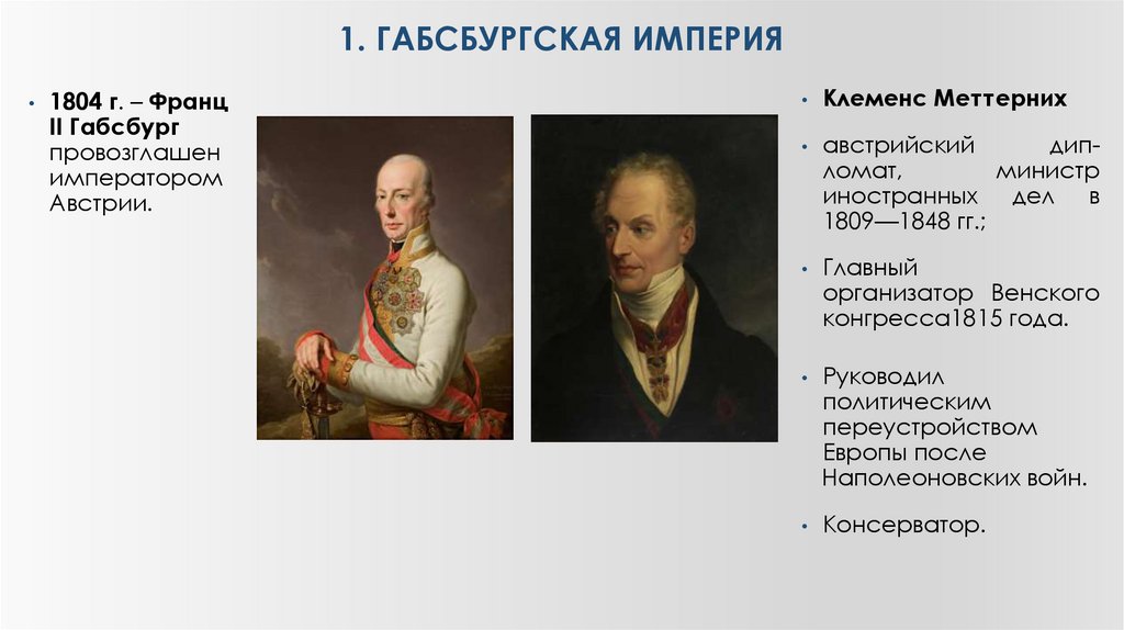 1. ГАБСБУРГСКАЯ ИМПЕРИЯ1804 г. – Франц