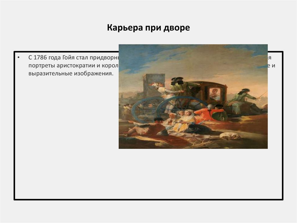 Карьера при двореС 1786 года Гойя стал придворным художником королей Карла III и Карла IV. Создавая