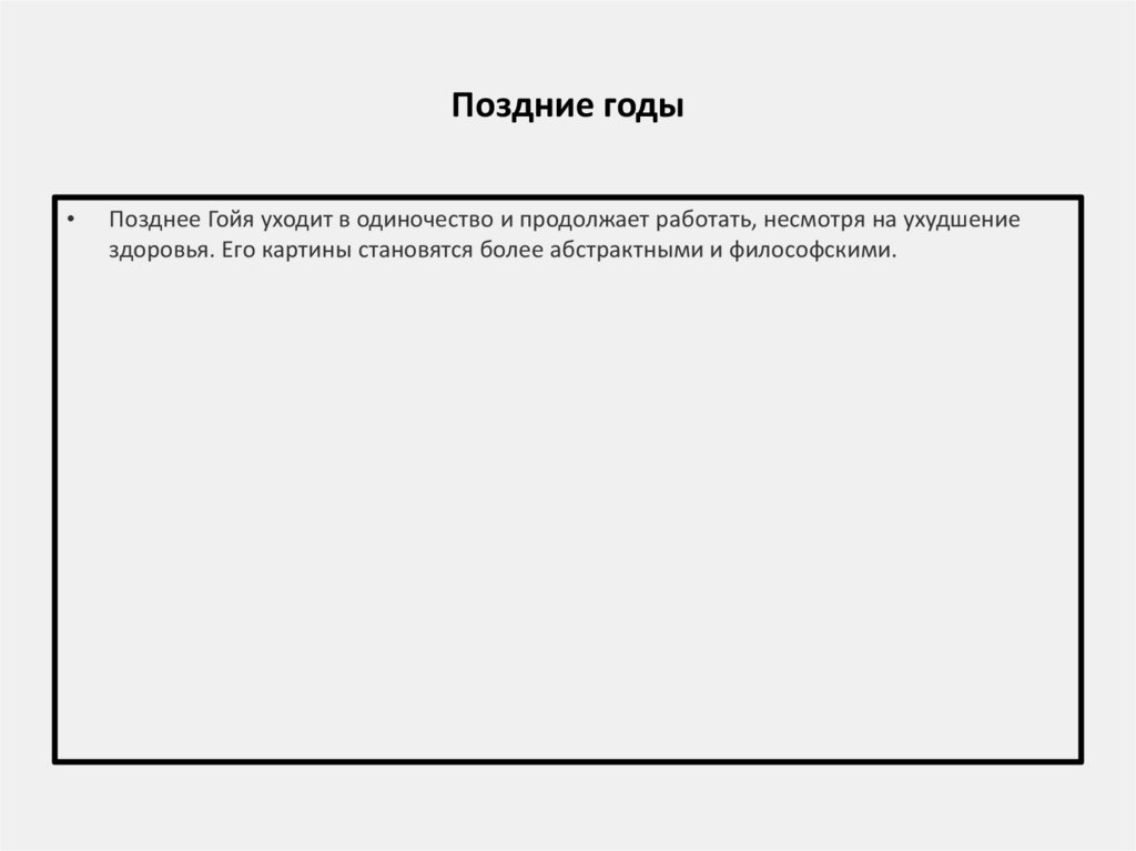Поздние годыПозднее Гойя уходит в одиночество и продолжает работать, несмотря на ухудшение