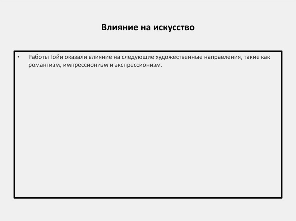 Влияние на искусствоРаботы Гойи оказали влияние на следующие художественные направления, такие как