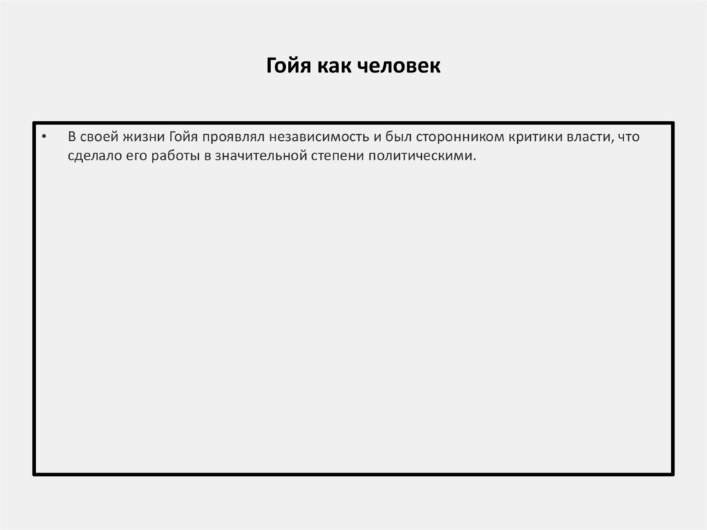 Гойя как человекВ своей жизни Гойя проявлял независимость и был сторонником критики власти, что