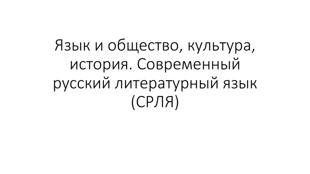 1. Язык и общество, культура, история. Современный русский литературный язык (СРЛЯ)