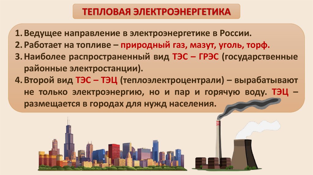 ТЕПЛОВАЯ ЭЛЕКТРОЭНЕРГЕТИКА1. Ведущее направление в электроэнергетике в России.