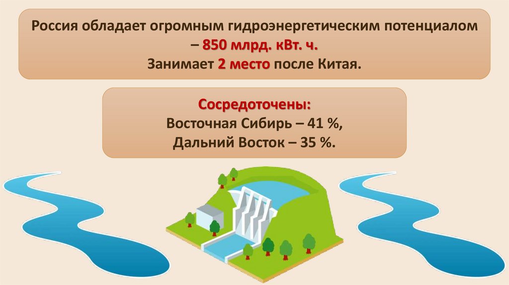 Россия обладает огромным гидроэнергетическим потенциалом– 850 млрд. кВт. ч.