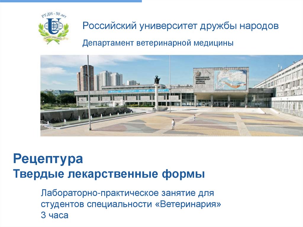 Российский университет дружбы народовДепартамент ветеринарной медицины