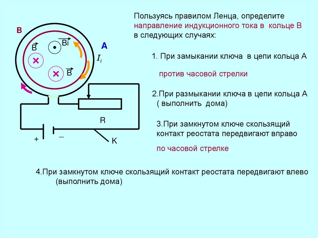 Пользуясь правилом Ленца, определитенаправление индукционного тока в кольце В