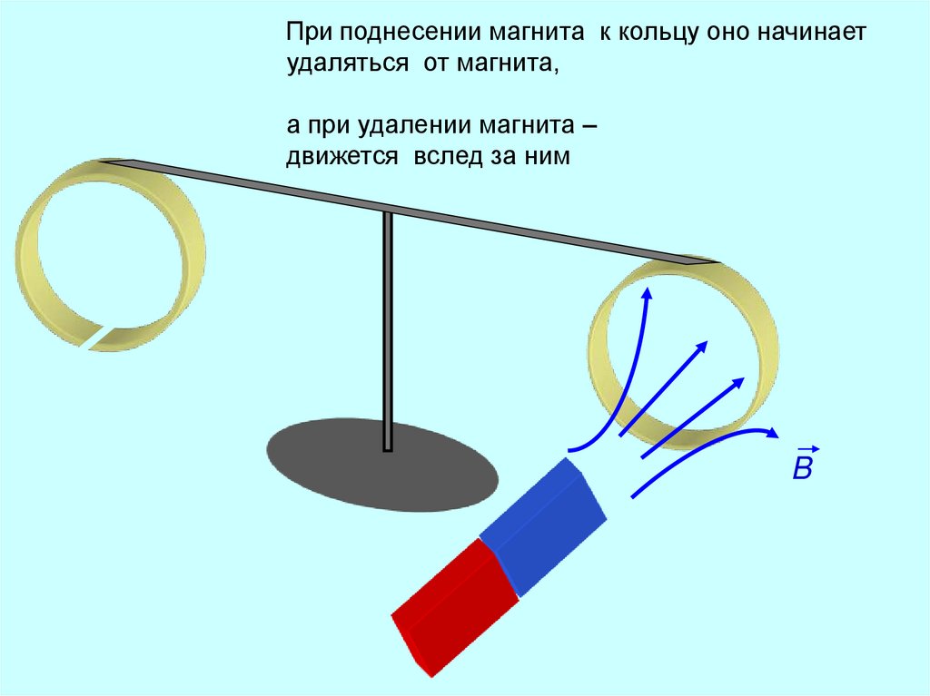 При поднесении магнита к кольцу оно начинаетудаляться от магнита,