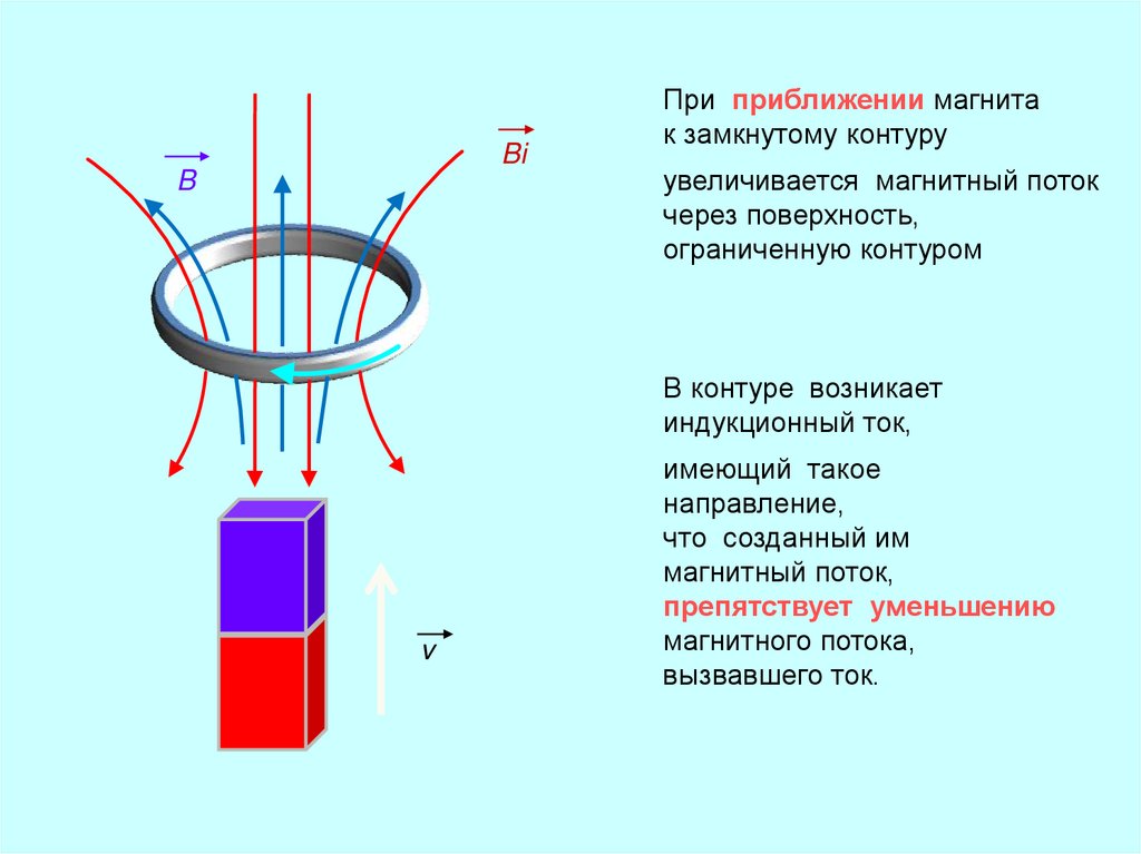 1.Направление индукционного тока зависит от того:• приближаем мы магнит к контуру или удаляем его