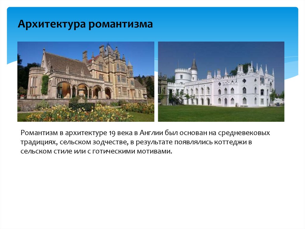 Архитектура романтизмаРомантизм в архитектуре 19 века в Англии был основан на средневековых