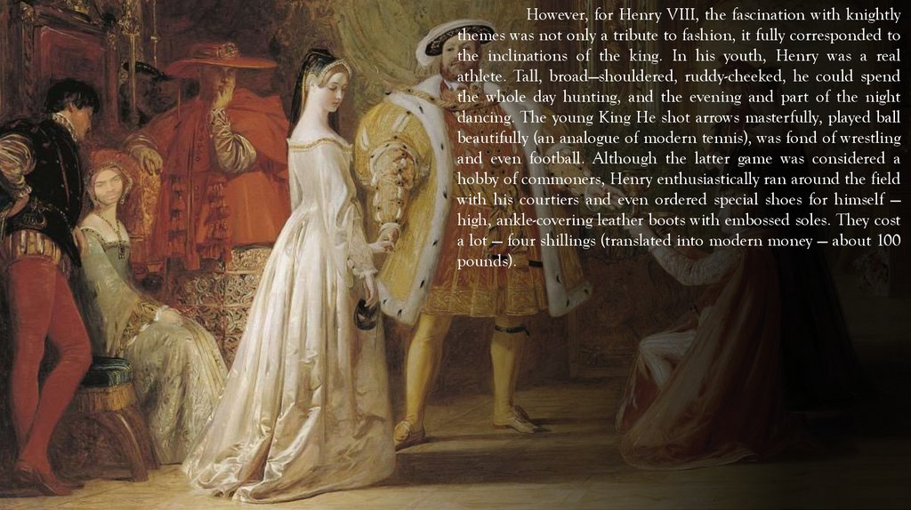 However, for Henry VIII, the fascination with knightlythemes was not only a tribute to fashion, it fully corresponded to