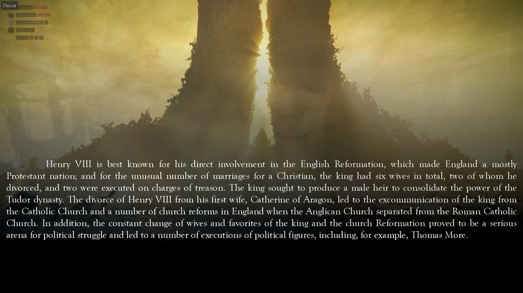 arena for political struggle and led to a number of executions of political figures, including, for example, Thomas More.