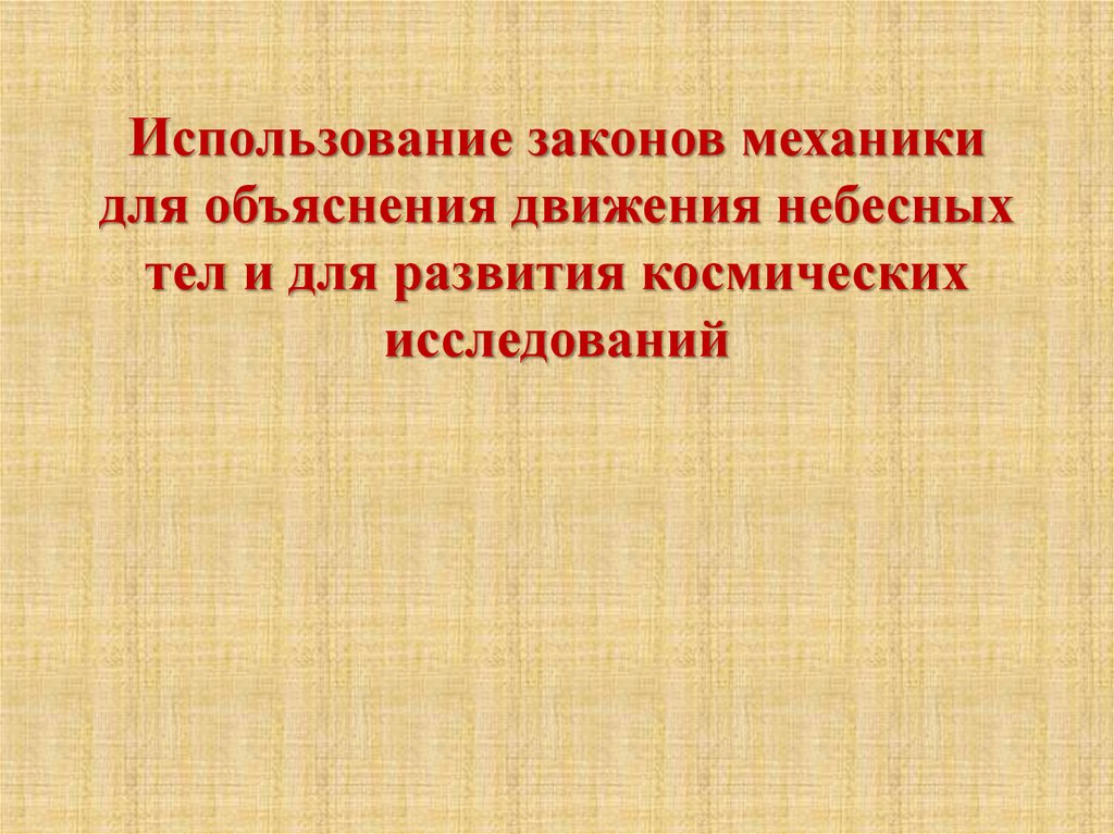 1. Использование законов механики для объяснения движения небесных тел и для развития космических исследований
