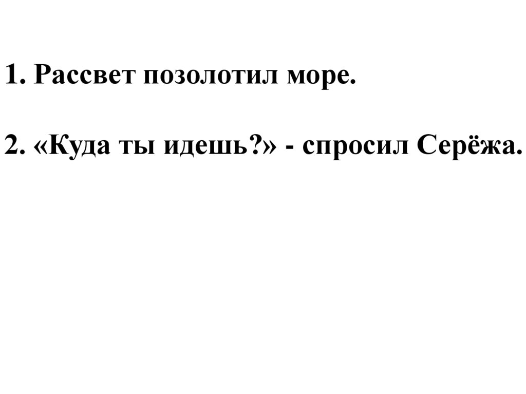 1. Рассвет позолотил море.2. «Куда ты идешь?» - спросил Серёжа.