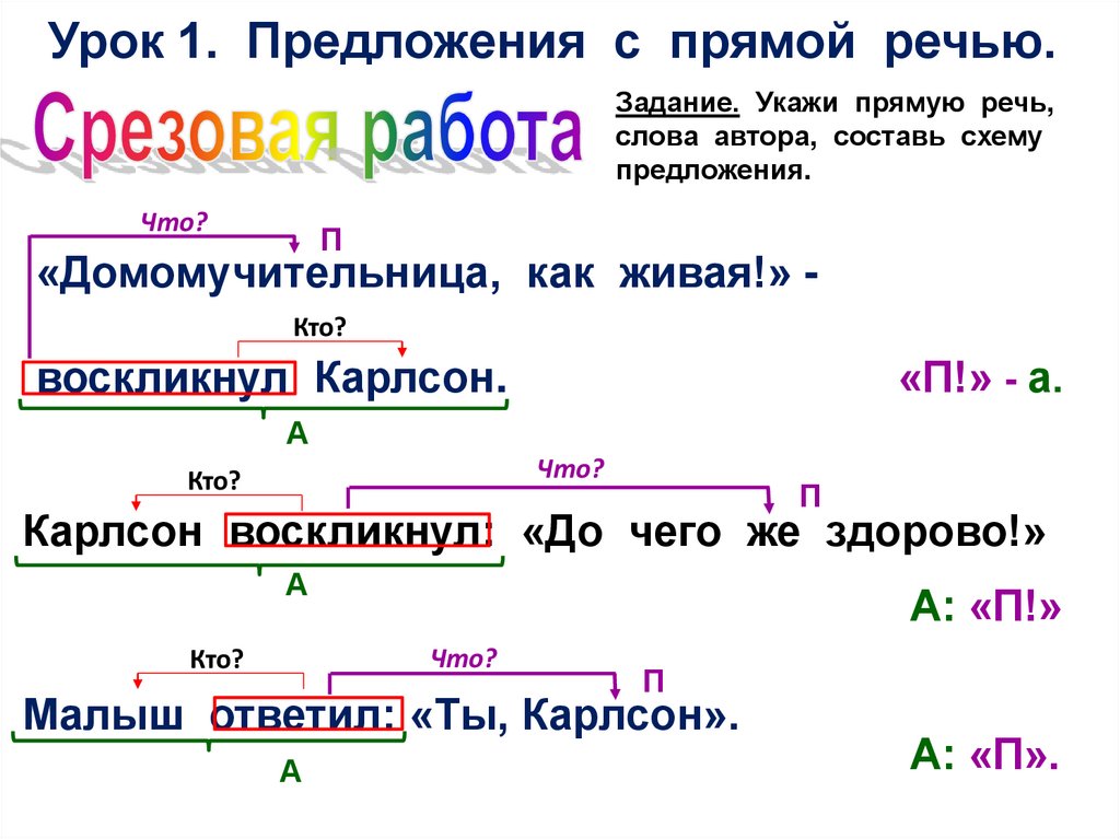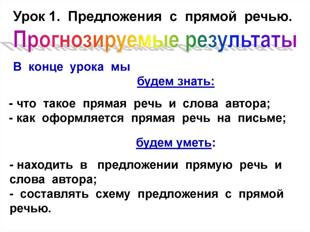 Урок 1. Предложения с прямой речью.В конце урока мы