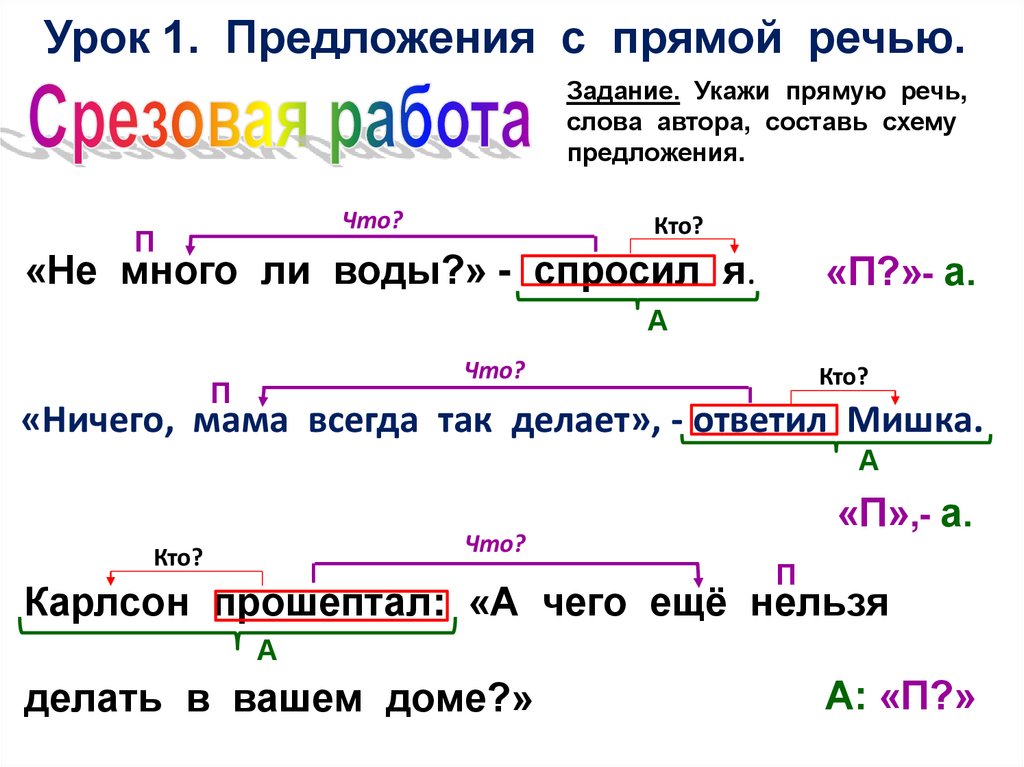 Урок 1. Предложения с прямой речью.Задание. Укажи прямую речь,
