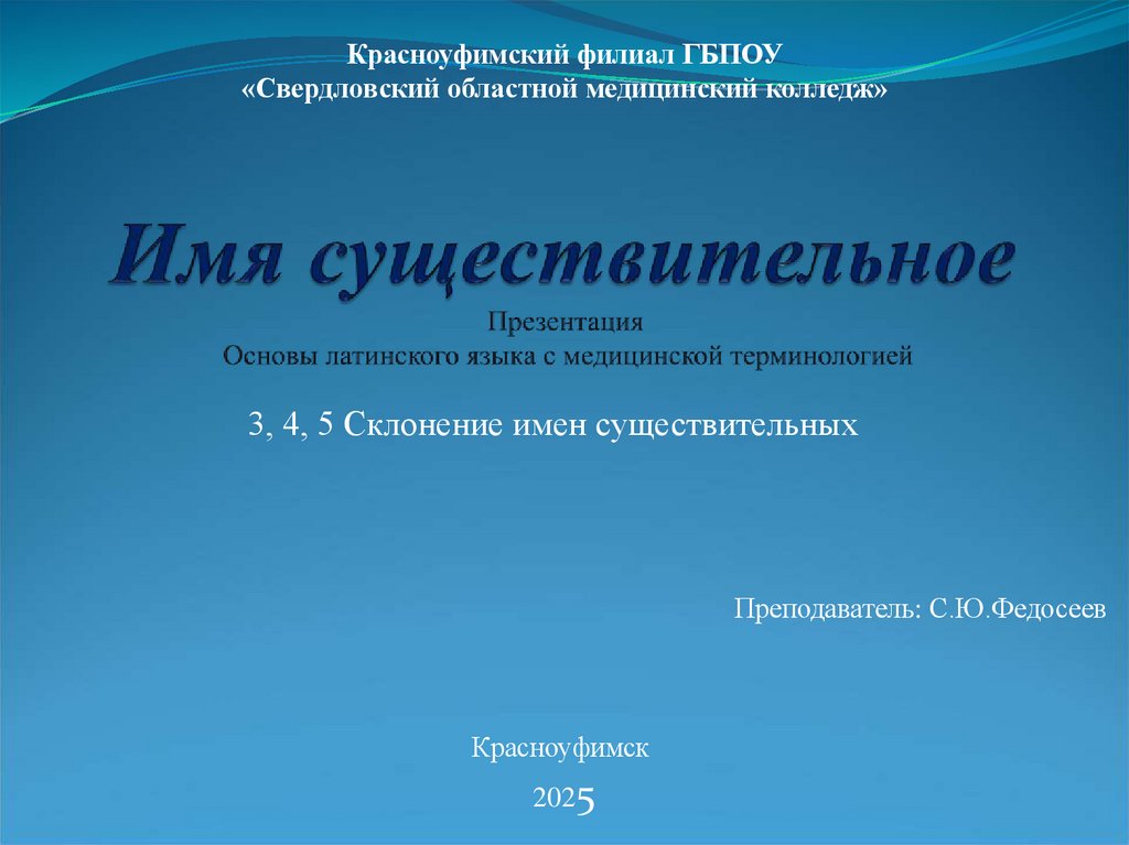 1. Имя существительное Презентация Основы латинского языка с медицинской терминологией