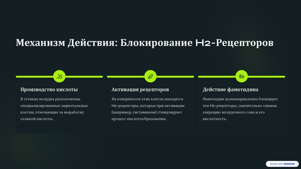 Механизм Действия: Блокирование H2-РецепторовПроизводство кислоты
